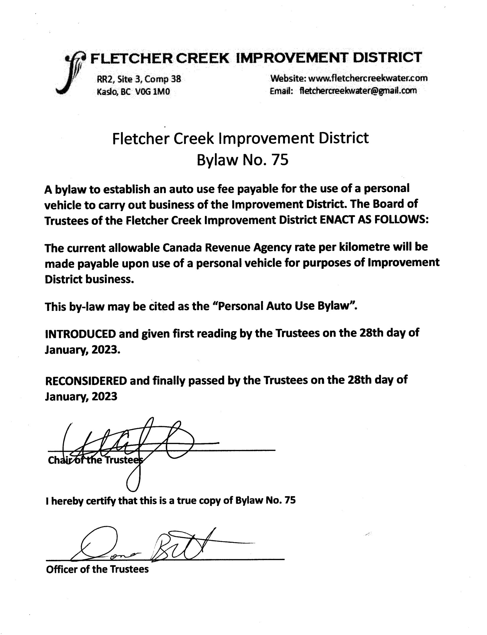 Bylaw 75 – Personal Auto-use Bylaw ______________________________________ |